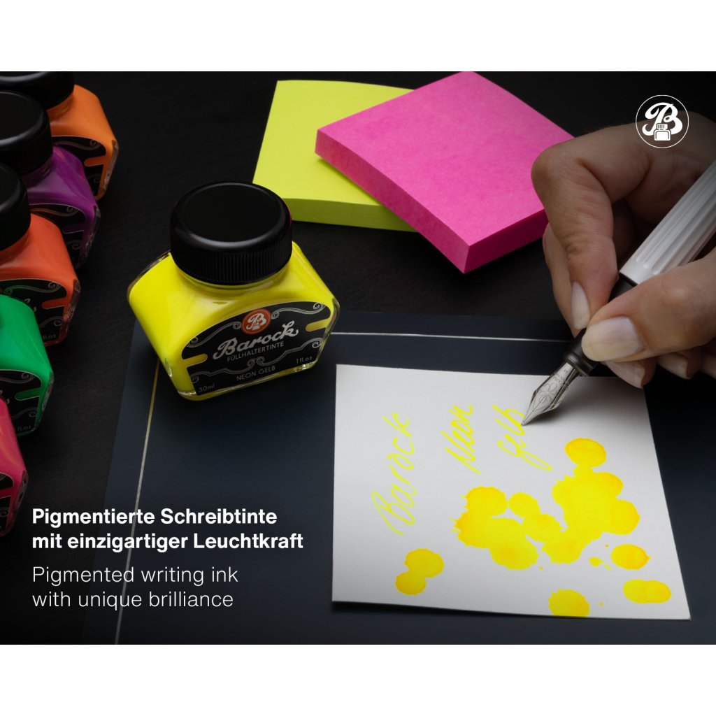 Řada BAROCK Highlighter Ink od německé značky Octopus nabízí zářivé pigmentové inkousty v neonových odstínech, které promění vaše zvýrazňování v estetický zážitek. Jsou navrženy pro použití v plnicích perech, perkách, skleněných perech, štětcích či pumpovacích markerech a poslouží i k doplnění vyschlých zvýrazňovačů.