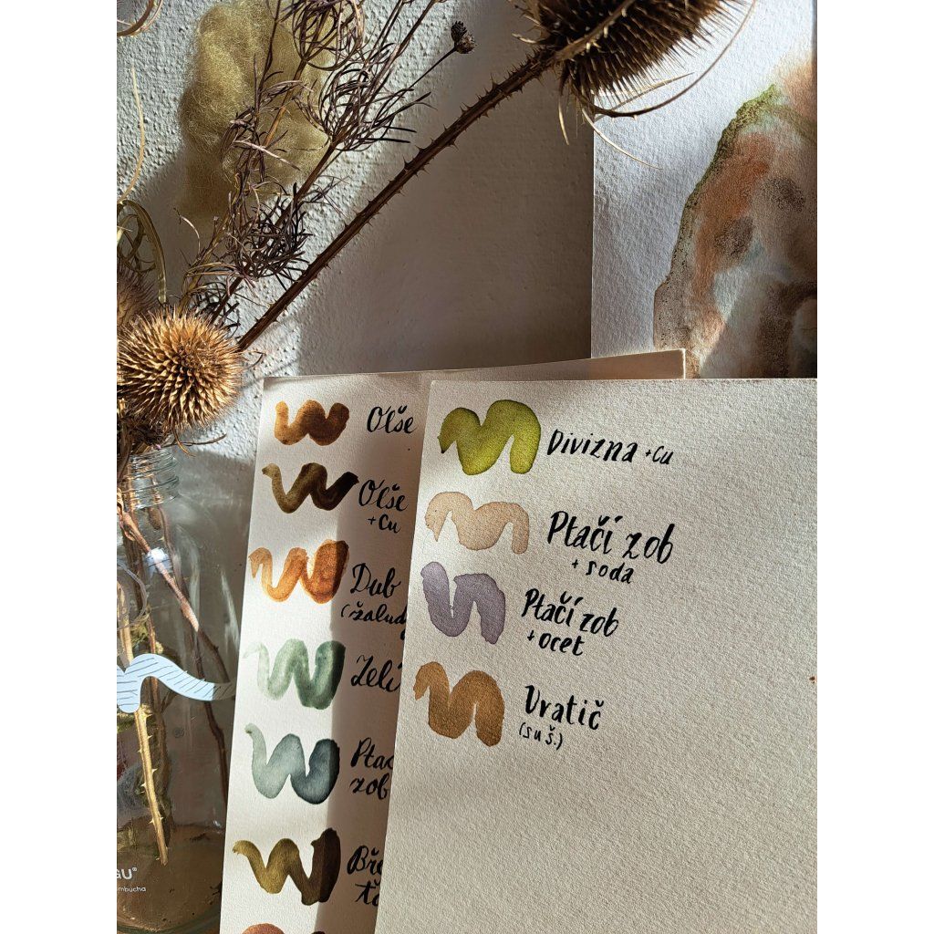 My name is Monika Doležalová and I am an illustrator and guide to the world of natural colours. In working with inks, I am fascinated by discovering sources hidden in our immediate surroundings and by the sense of surprise that comes with processing each individual plant. I enjoy testing the qualities of different materials within the creative process, combining them, and modifying them. I deeply appreciate the way making things by hand can clear the mind.