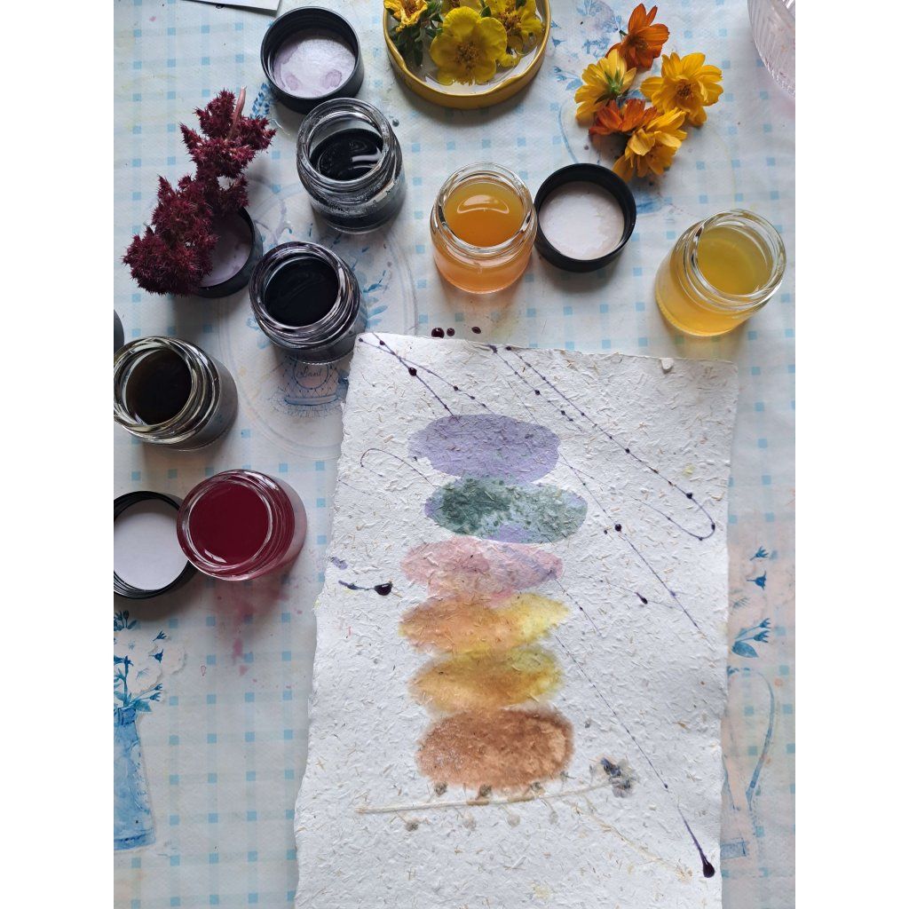 This workshop combines the alchemy of colour, experimentation, a mindful approach to making, and the joy of discovery. You can look forward to playful exploration of shades, working with natural materials, and finding space to relax and create without pressure. You will leave not only with your own ink and colour chart, but also with a finished original artwork.