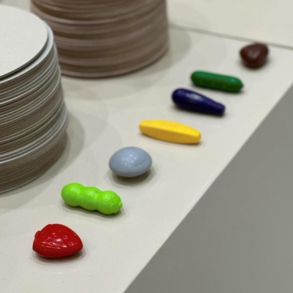 A creative crayon set inspired by farm products. Playful shapes support fine motor skill...