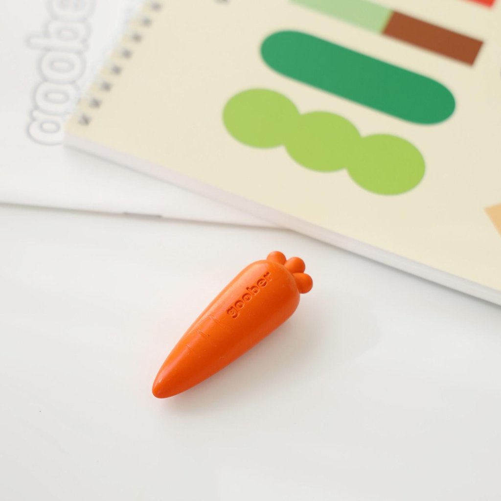 Goober magnetic crayons combine drawing and everyday playfulness in one compact object. Made from Goober’s signature firm, low-transfer wax, each crayon functions both as a drawing tool and a magnet. It easily attaches to metal surfaces such as fridge doors, magnetic boards or metal desks, so it is always visible and ready to use.