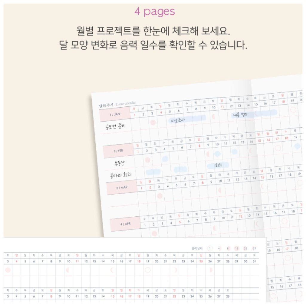 Má stránky na měsíce i týdny, takže si můžete snadno plánovat.