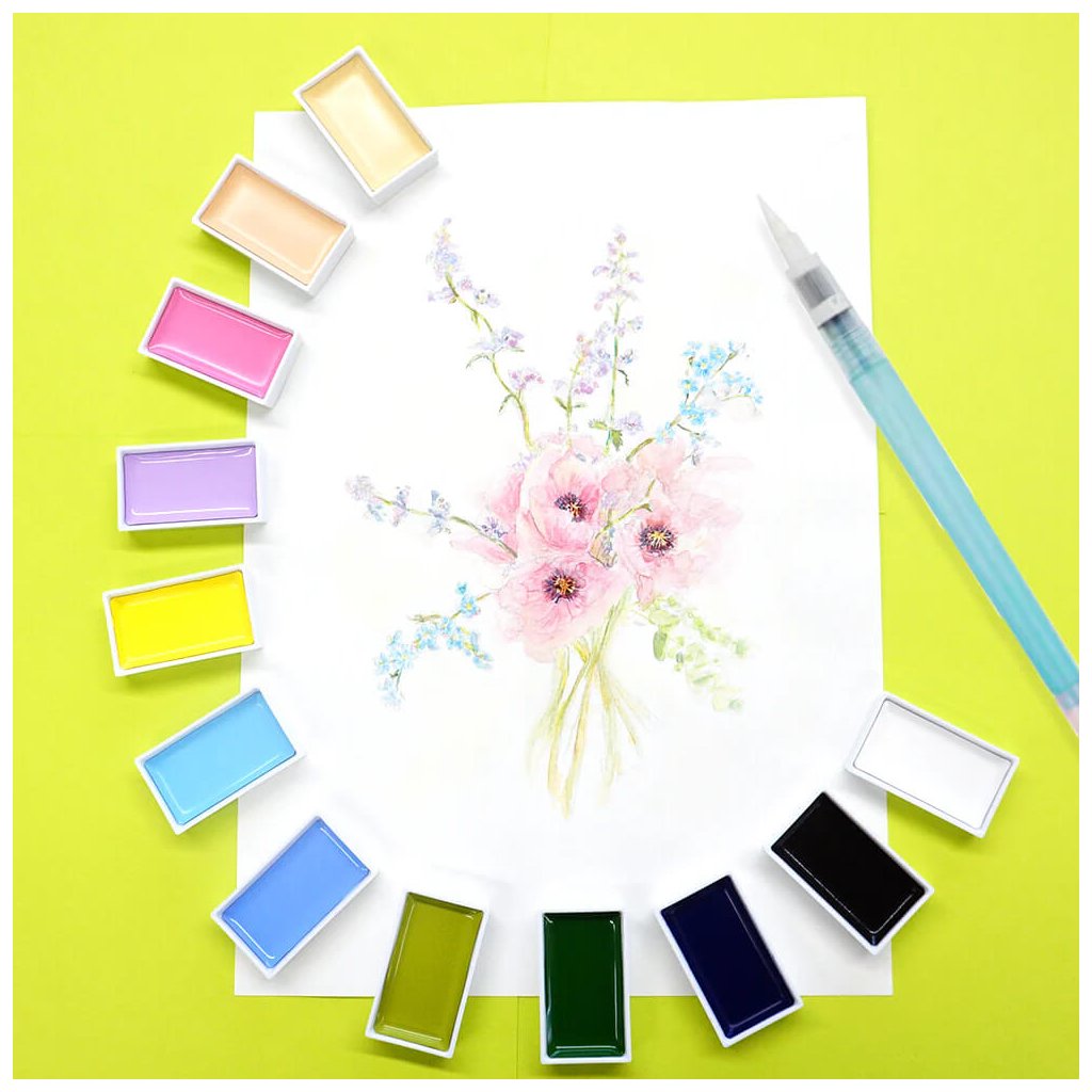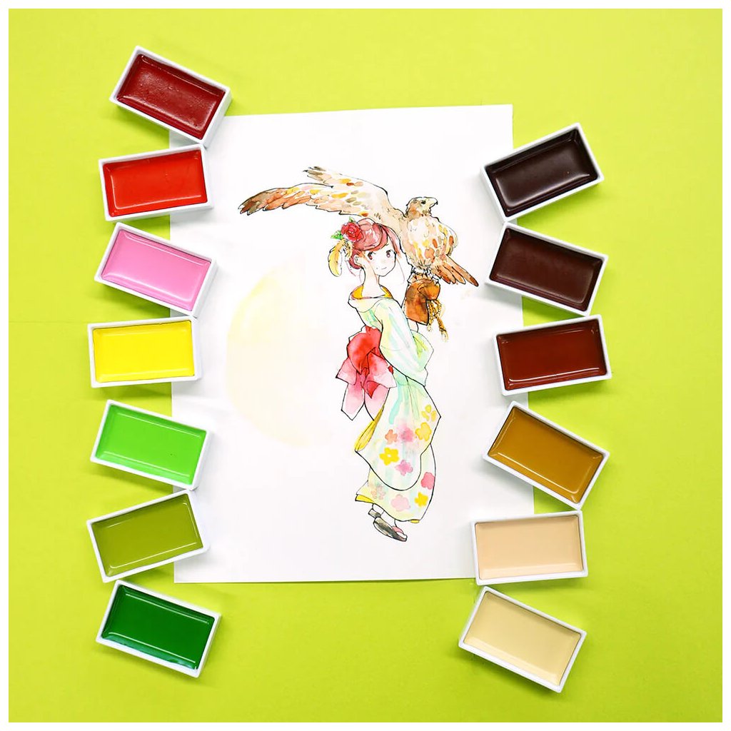 - 12 traditional Japanese watercolor colors in a compact and practical palette