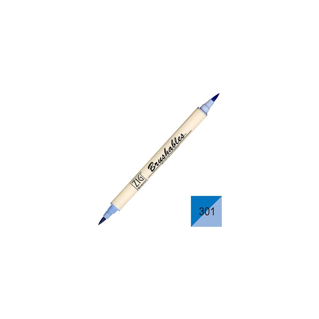 Kuretake ZIG Brushables Brush Pen nabízí unikátní dvoustranný design, kde jeden hrot obsahuje plnou barvu a druhý hrot 50% odstín této barvy.