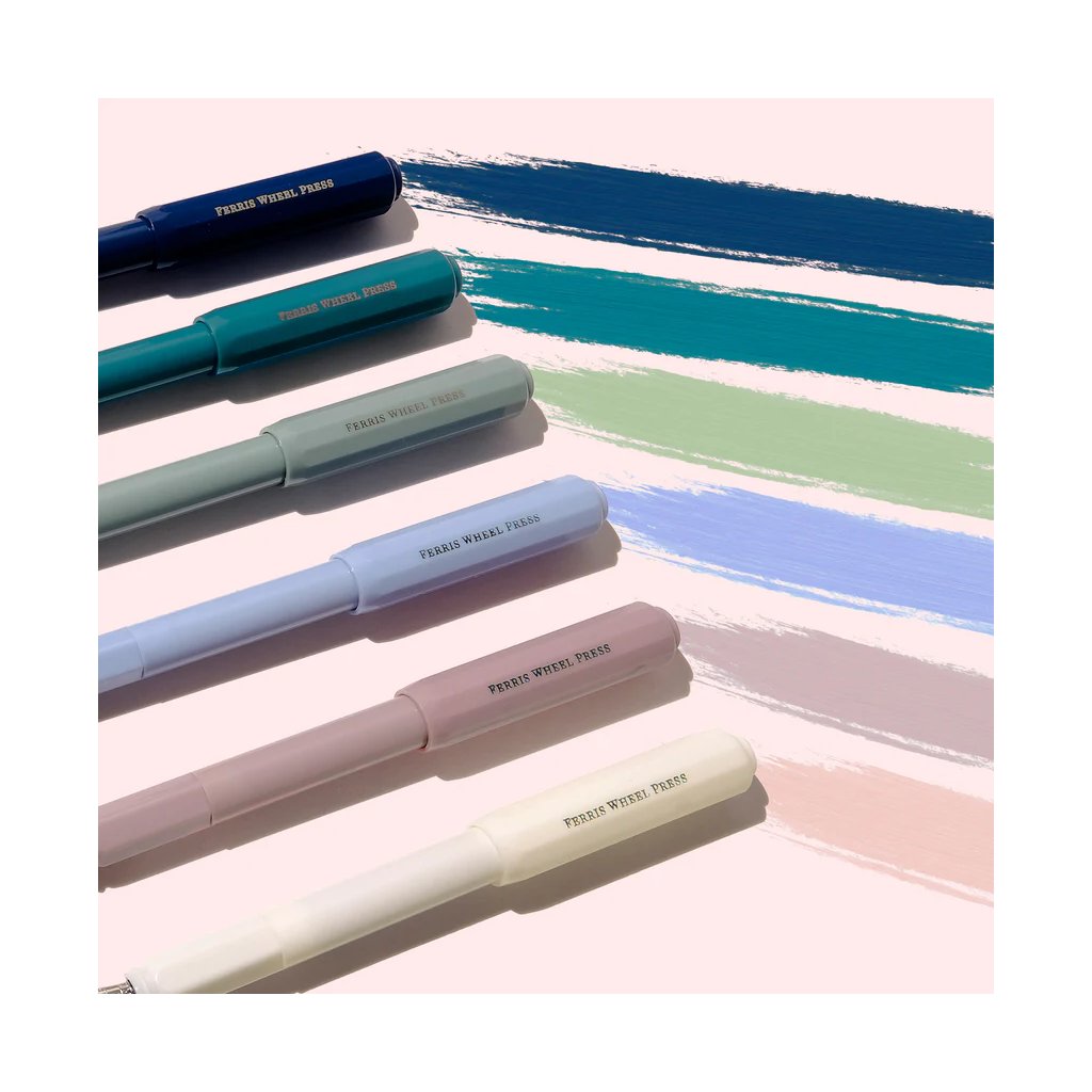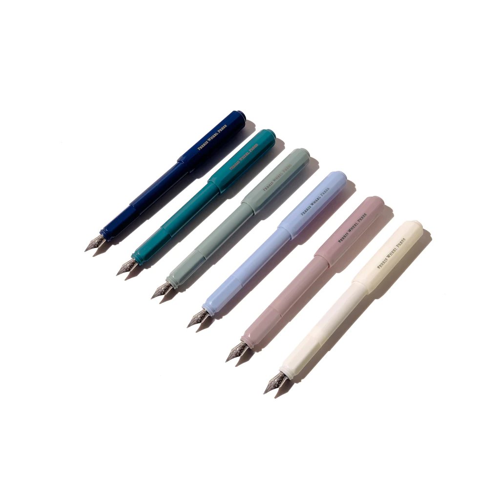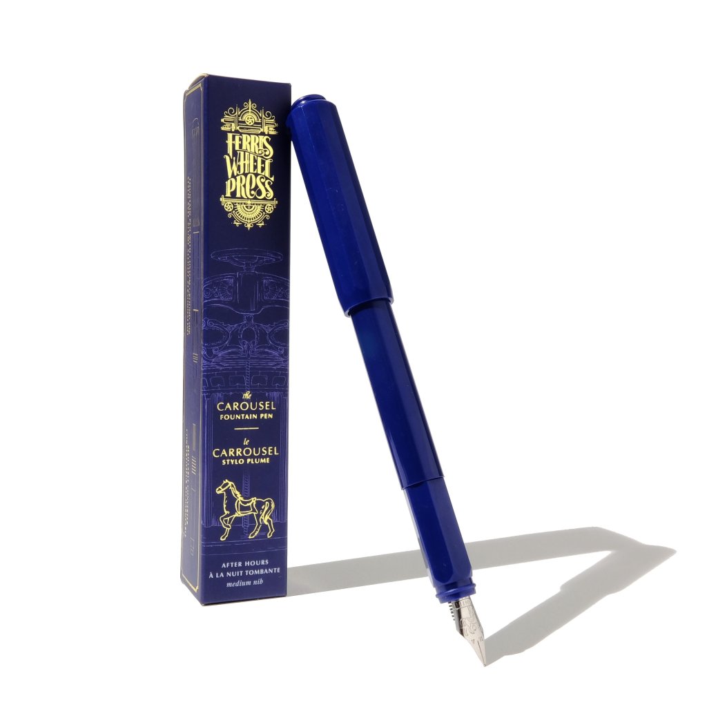 Se stejným tělem a siluetou se plnicí pero Carousel a kuličkové pero Roundabout uvádějí na trh v 6 nádherných barvách. Každé pero je vybaveno vlastním konvertorem, připraveným k naplnění a opětovnému naplnění oblíbeným inkoustem Ferris Wheel Press.