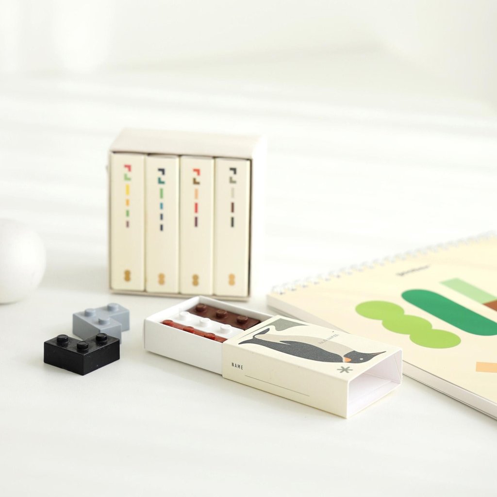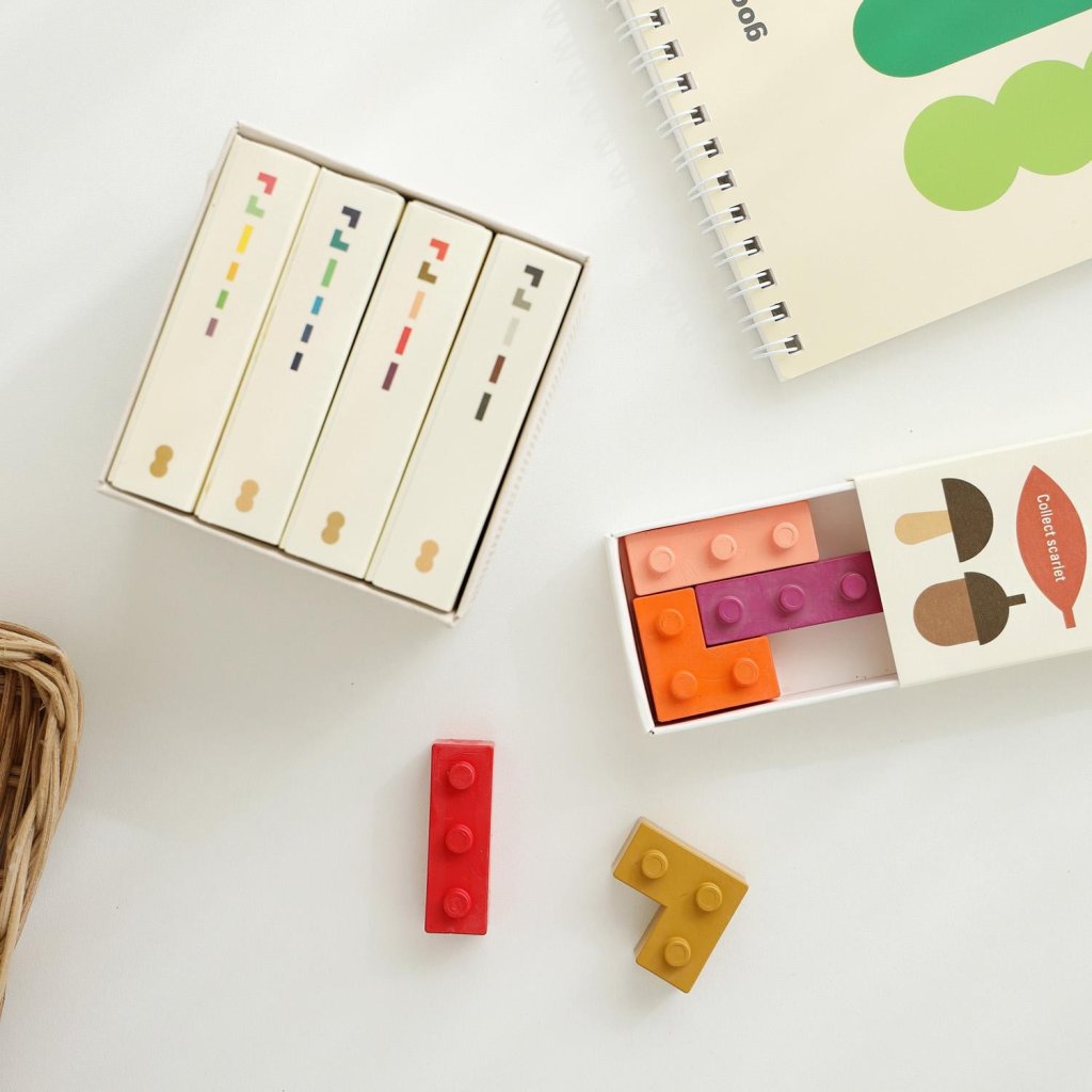 Pastelky mají podobu pevných voskových bloků ve třech různých tvarech. Lze je skládat, spojovat jako puzzle a kreslit s nimi jedním nebo více bloky najednou. Díky stohovatelnému designu je možné nanášet několik barev současně a vytvářet originální efekty jediným tahem.