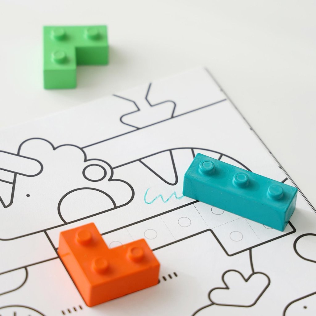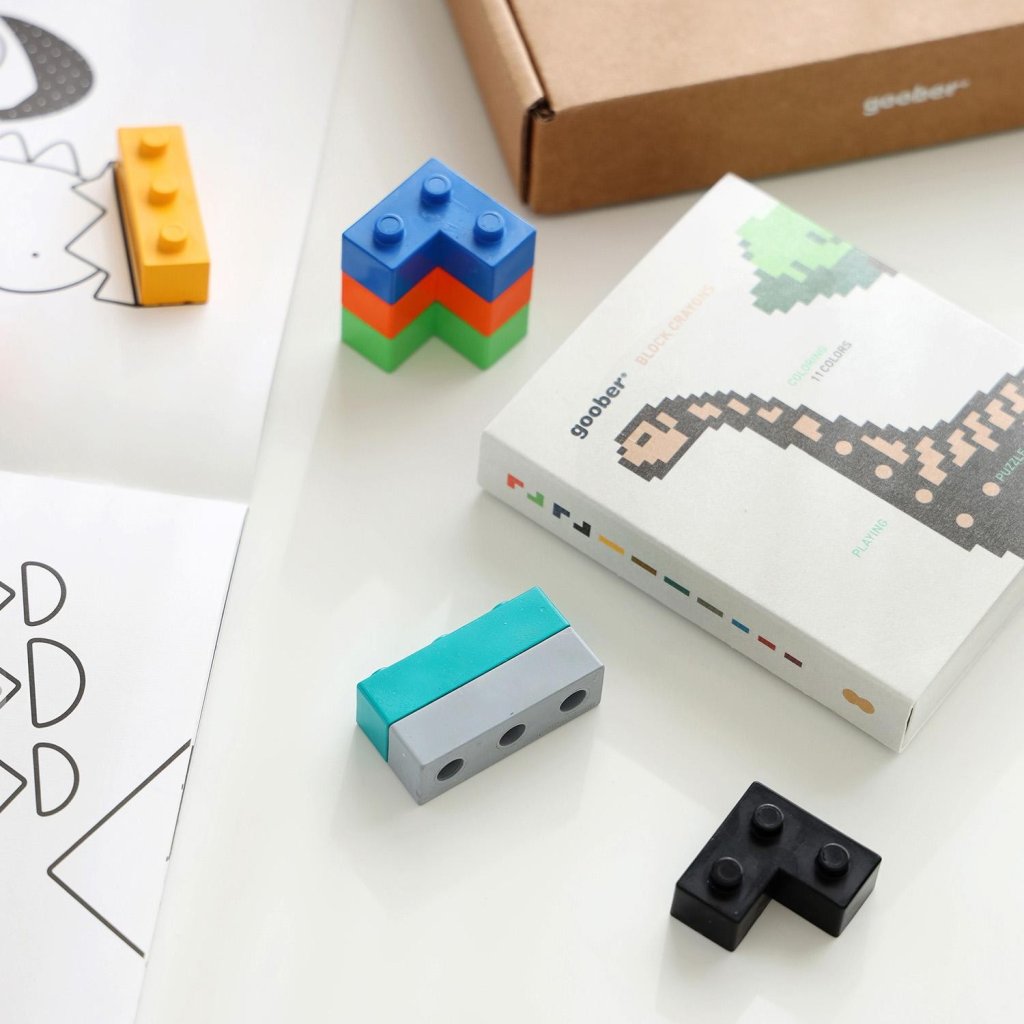 Goober sada pastelek kostky Jumbo spojuje voskovou pastelku a stavební kostku do jednoho...