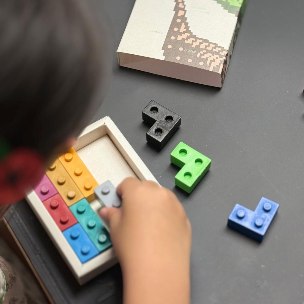 Sada obsahuje 11 voskových kostek ve třech různých tvarech. Díky stohovatelnému provedení lze kreslit více barvami najednou a vytvářet originální efekty jediným tahem. Kostky do sebe zapadají jako puzzle a i malé zbytky lze spojit do jednoho vícebarevného bloku.