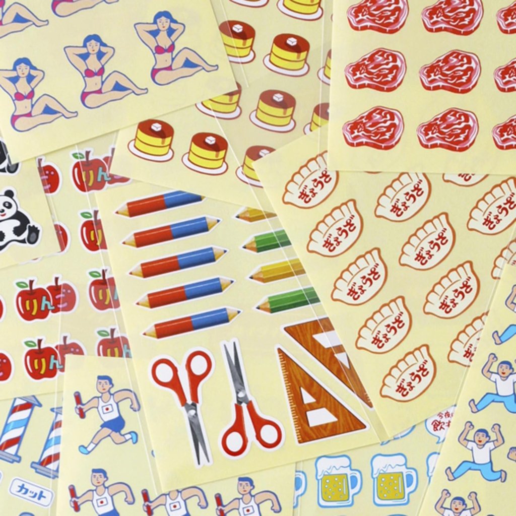 Balíček samolepek. Vypadají, jako by byly volně vystřižené a vložené z nějakého časopisu....