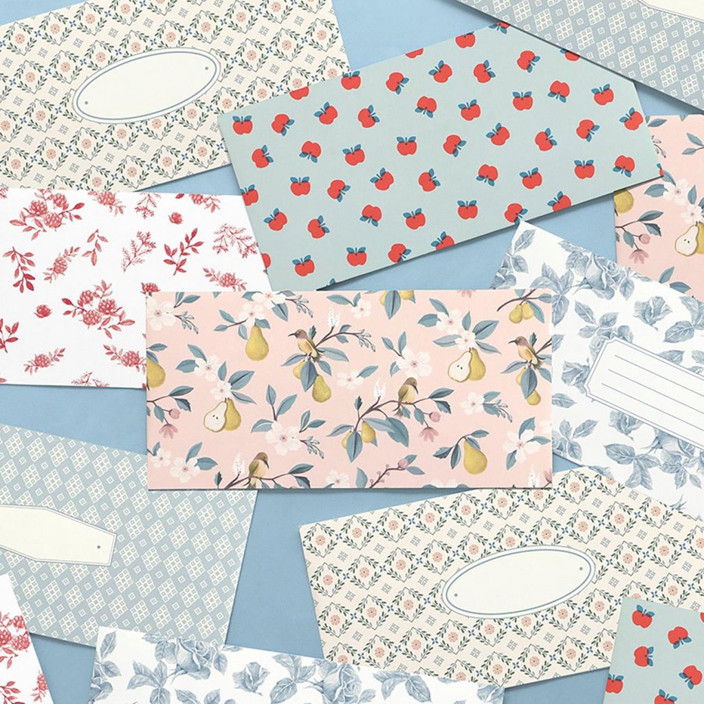 - Obsah balení: 24 obálek (6 různých designů), 28 oválných pečetících samolepek