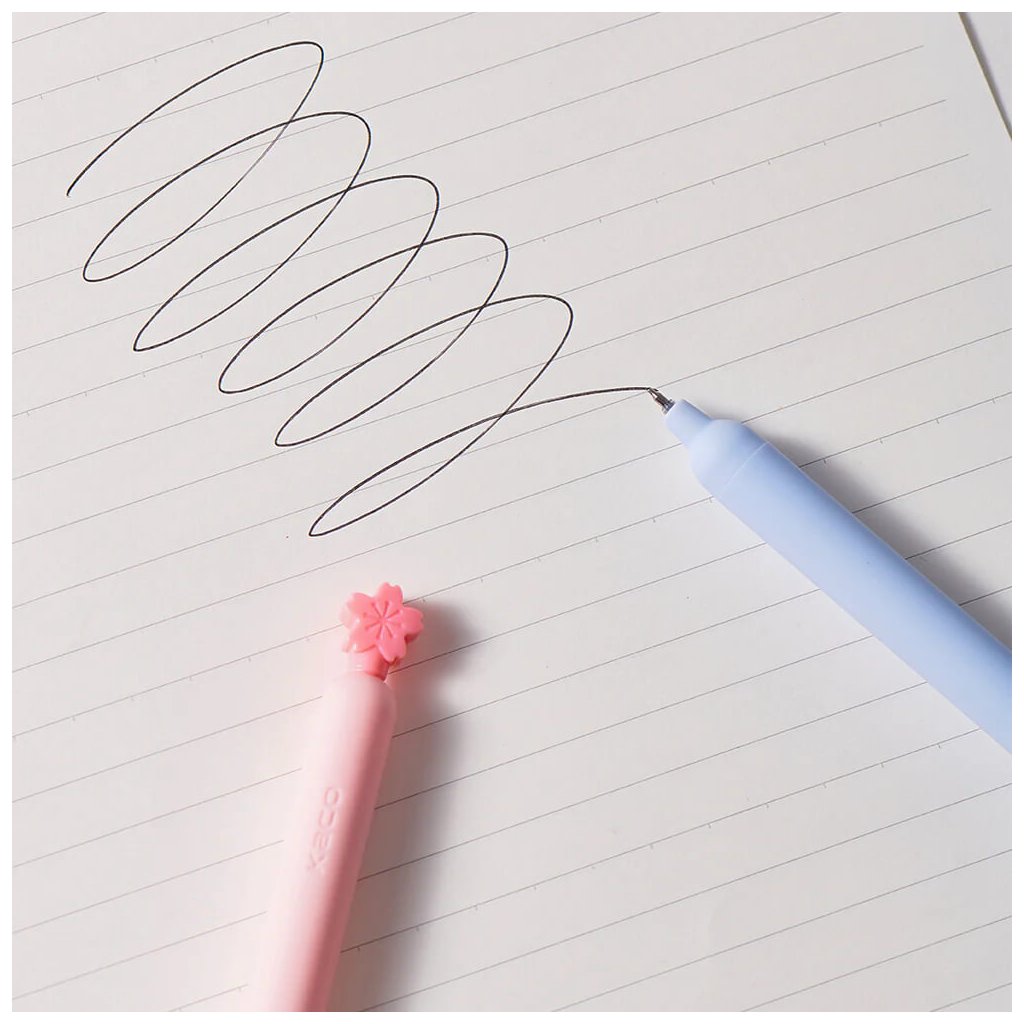 Každé pero ze sady Kaco Popup Sakura má jedinečný výsuvný mechanismus s květinovým "popup" tlačítkem, který dělá z obyčejného psaní malý radostný rituál.