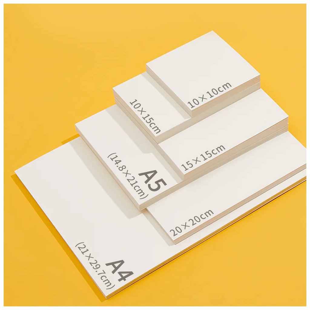 - Různé velikosti: K dispozici v různých formátech včetně A5, A4 a různých čtvercových rozměrů, poskytuje dostatek prostoru pro vaše kresby a skici