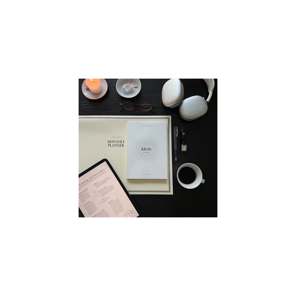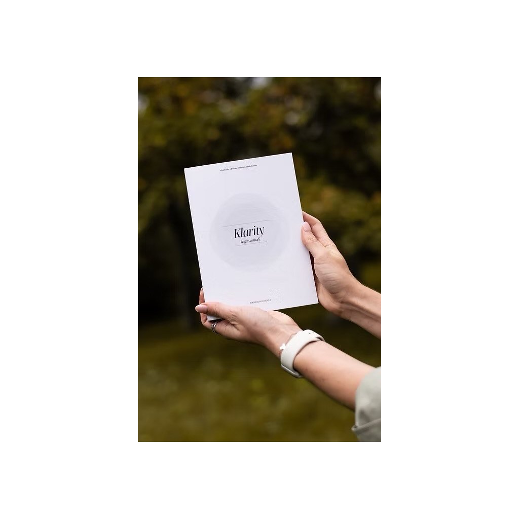 Sebereflexní a plánovací deník určený pro každodenní práci se sebou samou. Klarity Journal obsahuje ranní a večerní zápisy, afirmace, prostor pro plánování a osobní reflexi, a minimalistický design, který podporuje klid a soustředění.