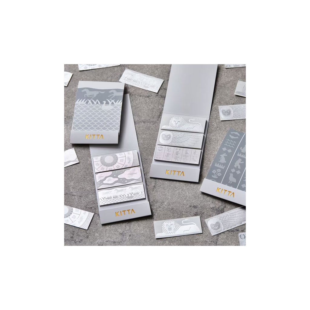 KITTA je praktická a elegantní forma washi pásky v podobě předřezaných samolepicích papírových pásků, které nejsou objemné a snadno se přenášejí. Díky skládacímu obalu ve velikosti karty se pohodlně vejdou do kapsy diáře, zápisníku nebo penálu a jsou ideální na cesty.