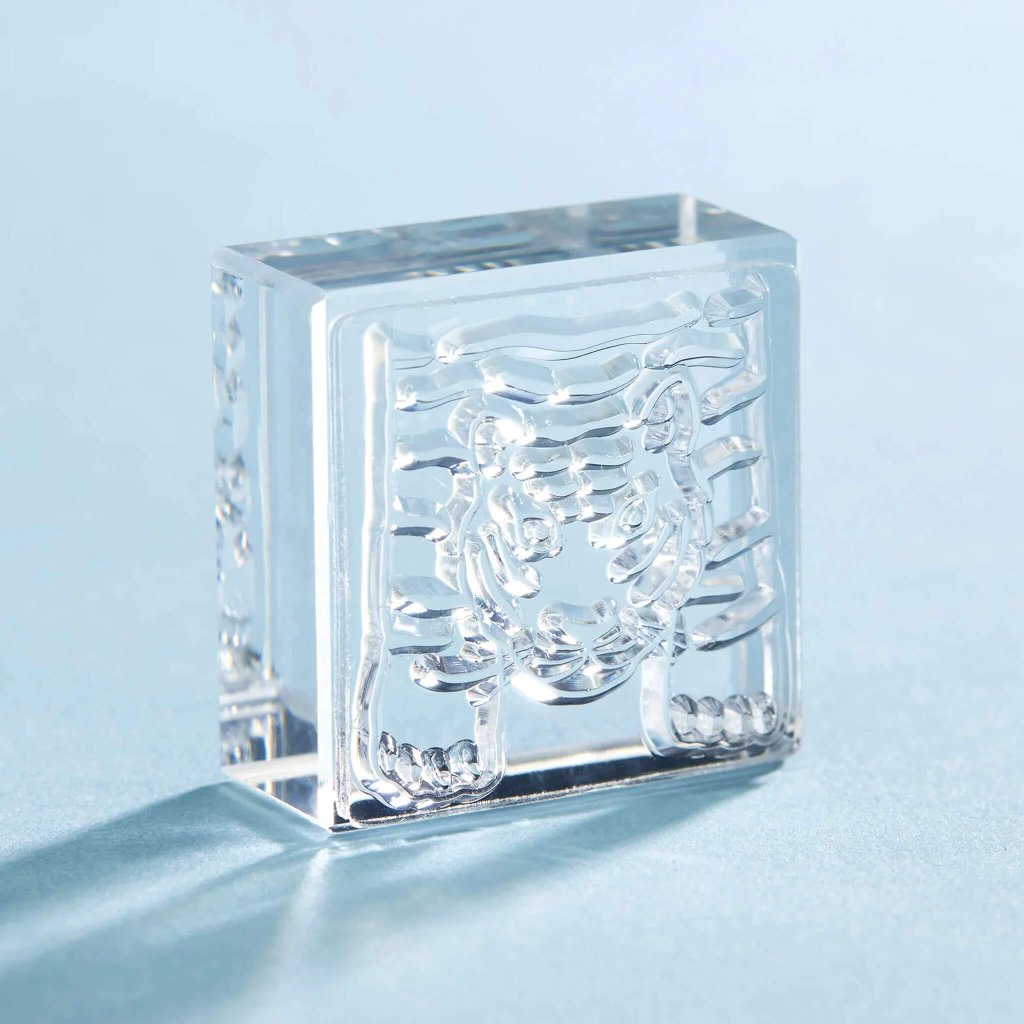 Každé razítko je vyrobeno zcela z čirého akrylu a svým vzhledem připomíná malou kostku ledu. Minimalistické, průhledné provedení umožňuje dokonalý přehled o umístění razítka, díky čemuž je snadné přesné razítkování, vrstvení motivů i vytváření složitějších kompozic.