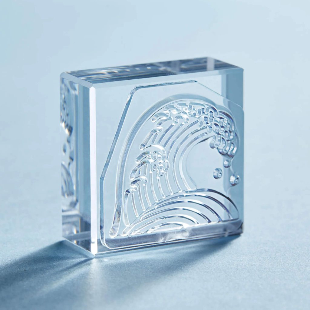 Každé razítko je vyrobeno zcela z čirého akrylu a svým vzhledem připomíná malou kostku ledu. Minimalistické, průhledné provedení umožňuje dokonalý přehled o umístění razítka, díky čemuž je snadné přesné razítkování, vrstvení motivů i vytváření složitějších kompozic.