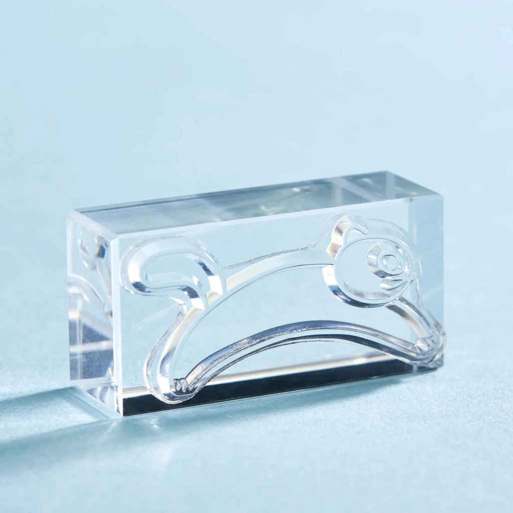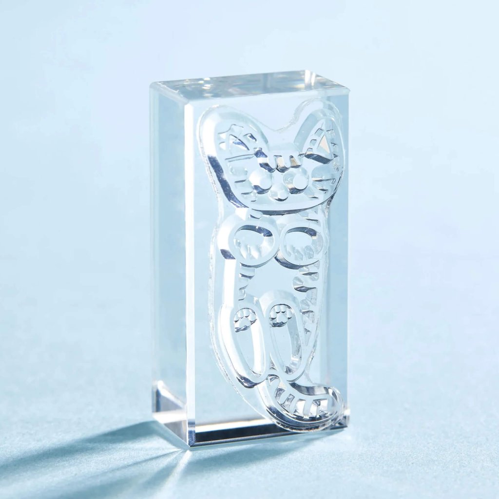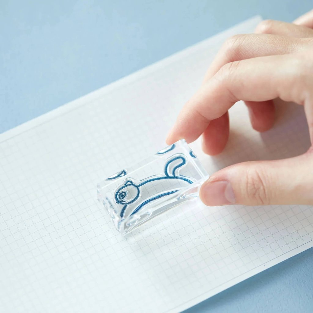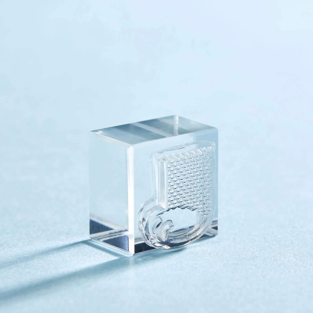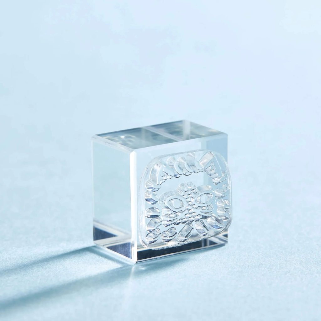 Každé razítko je vyrobeno zcela z čirého akrylu a svým vzhledem připomíná malou kostku ledu. Minimalistické, průhledné provedení umožňuje dokonalý přehled o umístění razítka, díky čemuž je snadné přesné razítkování, vrstvení motivů i vytváření složitějších kompozic.