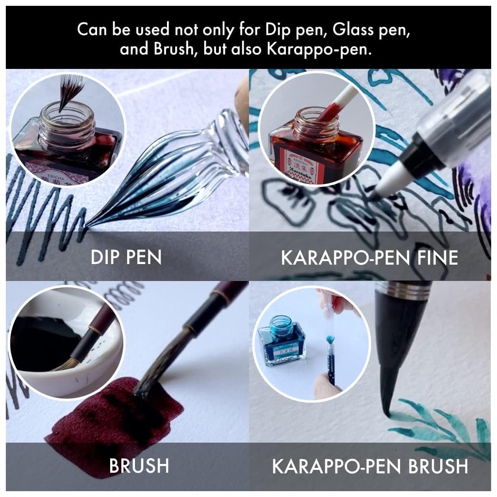 Tento inkoust je ideální pro použití s plnicími pery, skleněnými pery, dip pery i Kuretake Karappo-pery. Díky své sytosti a jemnému toku přináší nejen krásný barevný dojem, ale i autentický dotek historie, který propojuje tradiční japonskou estetiku s moderním psaním.