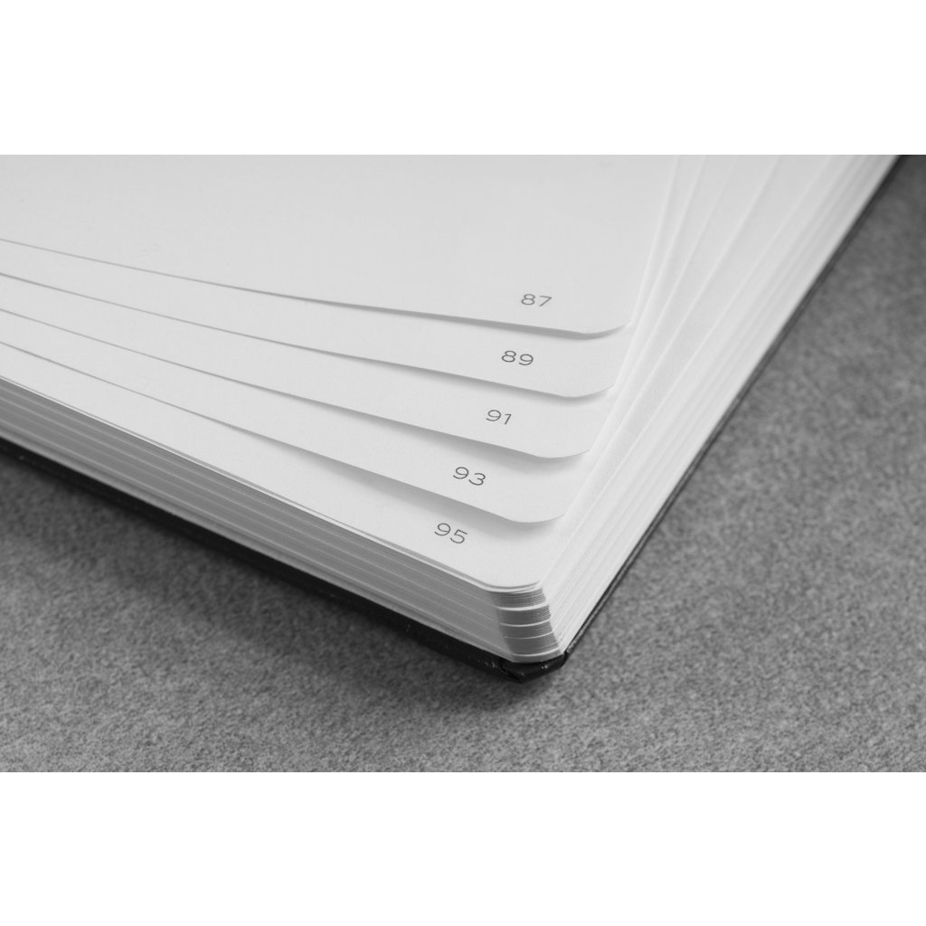 Formát B6+ (přibližně 5 × 7,5 palce) nabízí 89 očíslovaných stran s tečkovanou mřížkou a obsahuje užitečné doplňky jako mapu světových časových pásem a převodní tabulky jednotek. Pro nejvyšší odolnost a trvanlivost doporučujeme psát tužkou, kuličkovým perem, permanentními fixy nebo perem s archivačním voděodolným inkoustem. Gelová ani zvýrazňovače nejsou vhodné. V případě plnících per používejte voděodolný inkoust.