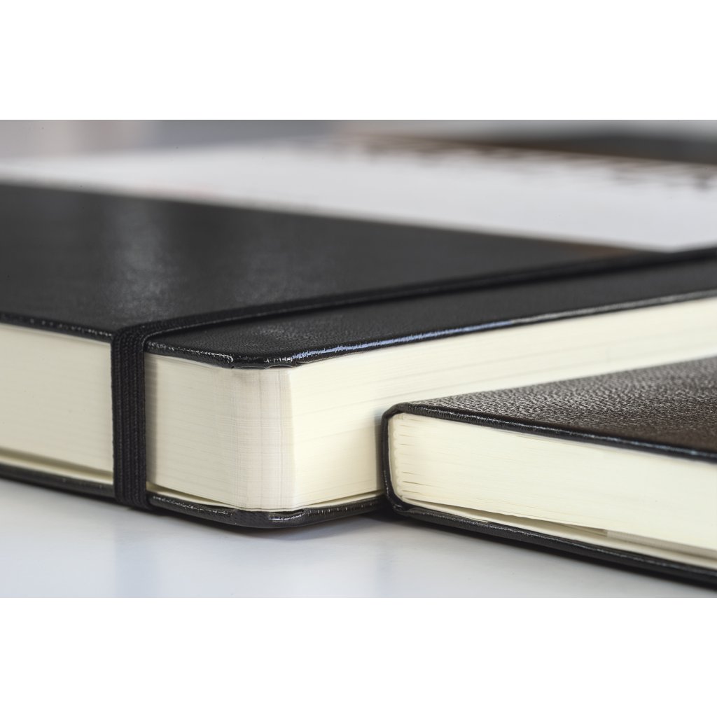 Střední formát A5 (145 × 210 mm) je nejoblíbenější velikostí této značky. Nabízí ideální poměr mezi praktičností a dostatkem místa pro psaní. Po otevření dokonale leží naplocho a dvojstrana se dá snadno okopírovat na formát A4.