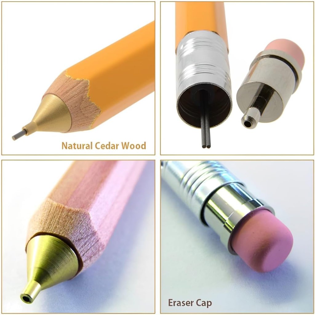 - Integrovaná guma v retro stylu na konci tužky