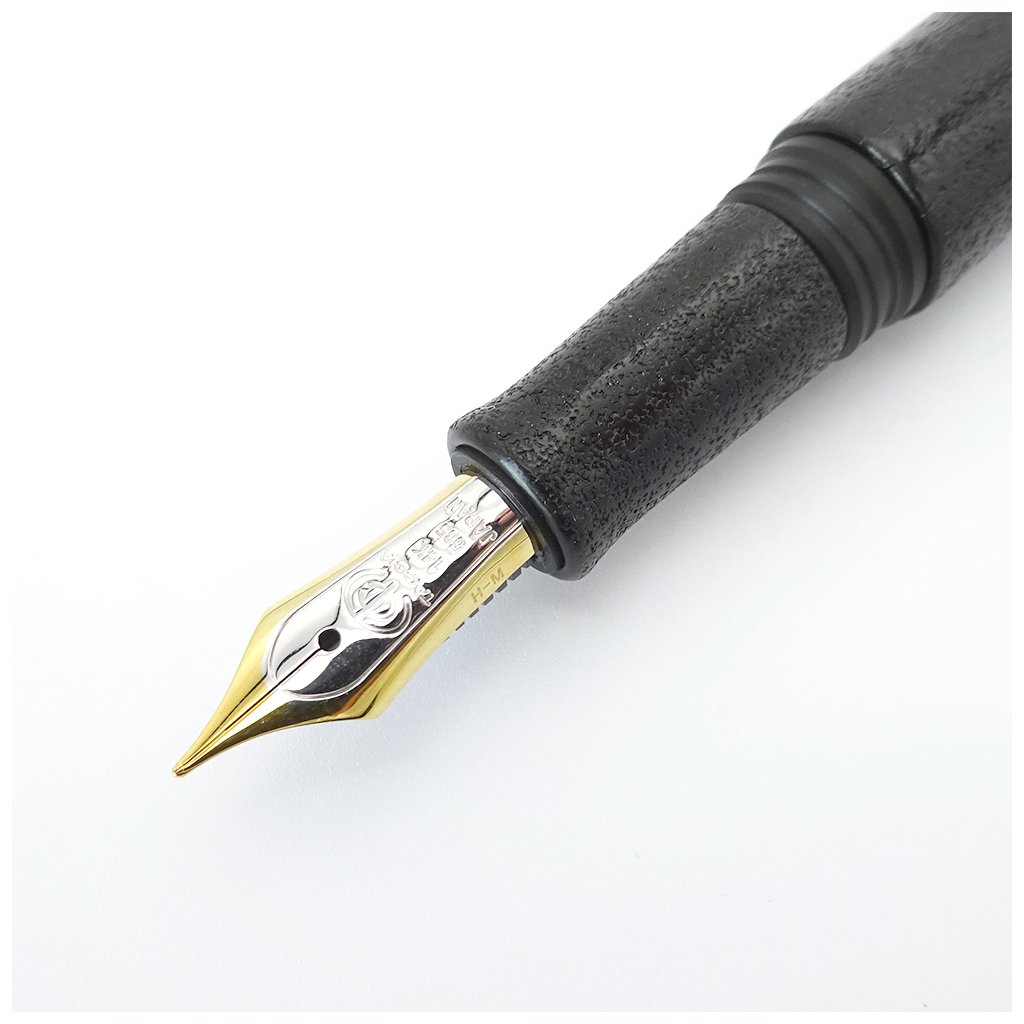 Tělo i víčko jsou vyrobeny z ebonitu, tradičního materiálu ceněného pro svou lehkost, pevnost a teplý pocit při držení. Pero je osazeno 14karátovým zlatým hrotem, který poskytuje plynulý tok inkoustu a kultivovaný projev při psaní.