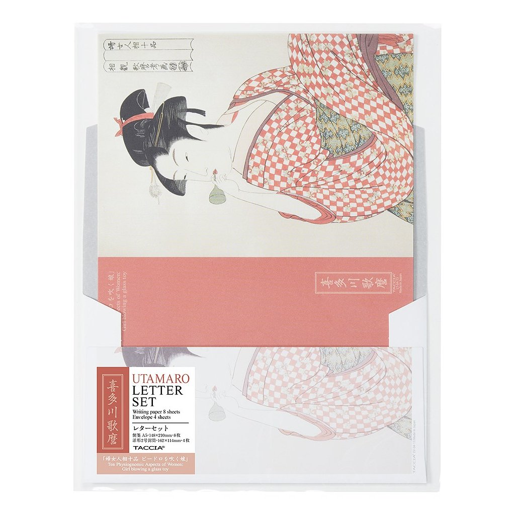 Taccia dopisní sada Ukiyo-e Utamaro, dívka foukající sklo
