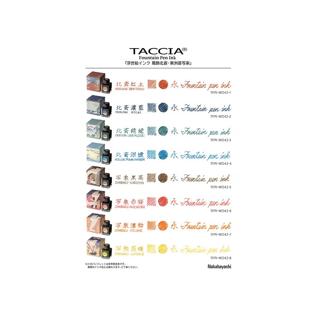 Řada Taccia Ukiyo-e je inspirována tradičním japonským uměním dřevořezu Ukiyo-e, které vzniklo v období Edo (17.–19. století). Tyto tisky zachycovaly každodenní život, přírodu, krásu i pomíjivost okamžiku – a právě tuto filozofii Taccia přenáší do světa inkoustů pro plnicí pera.