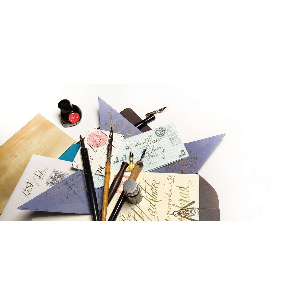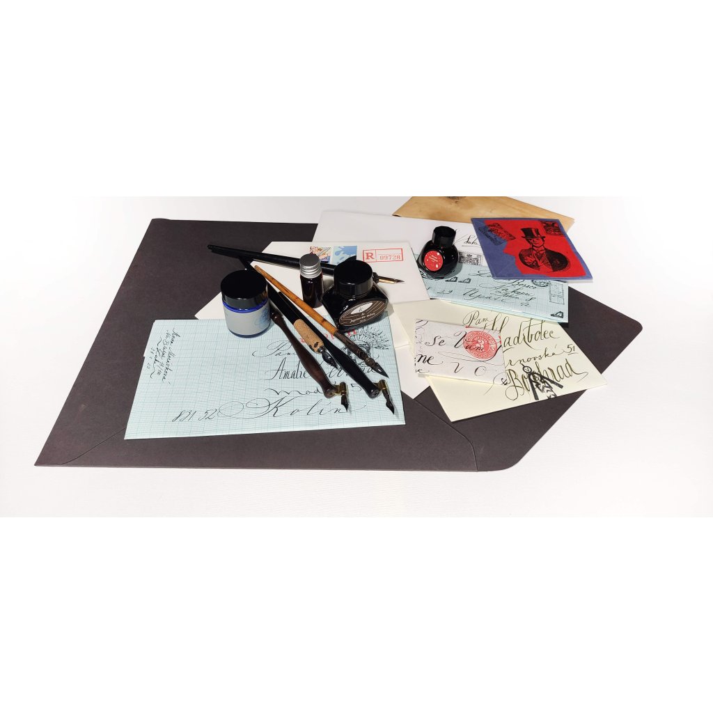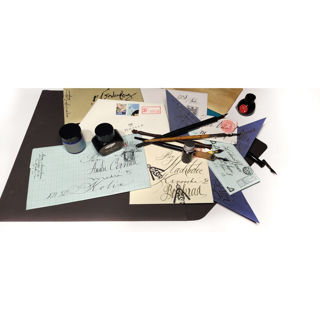 Vyzkoušíte si psaní klasickým namáčecím perem, naučíte se základy práce s písmem a kompozicí textu na obálce. Domů si odnesete několik vlastnoručně nadepsaných i složených obálek – a možná i chuť psát častěji.