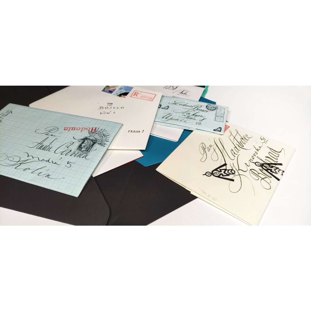 Originálně nadepsané obálky připravené k odeslání